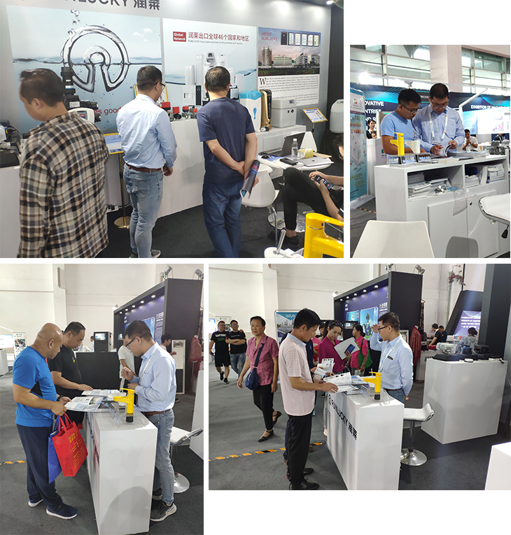 客商们对润莱前置过滤器的智能防泄漏、高效反冲洗功能感兴趣,免换滤芯的特点引来关注;家用软水机、家用净水龙头的外观设计和功能,让许多客商耳目一新。