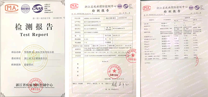 温州市鹿城区卫生监督所购买了2台润莱软水机送检,结果……