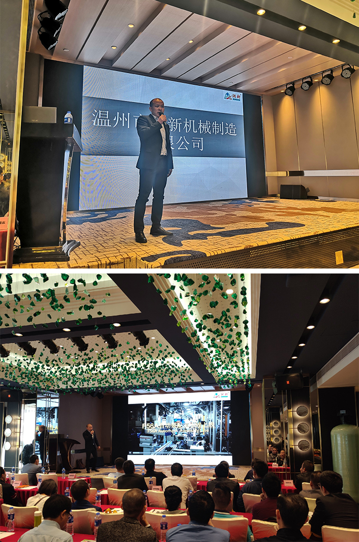 润新公司营销总监段全明介绍了润新公司生产规模、质量控制、市场推广等近况,重点介绍了F56A自动装配流水线等自动化改进情况,表示润新公司将继续投入加强自动化建设,进行持续改进。