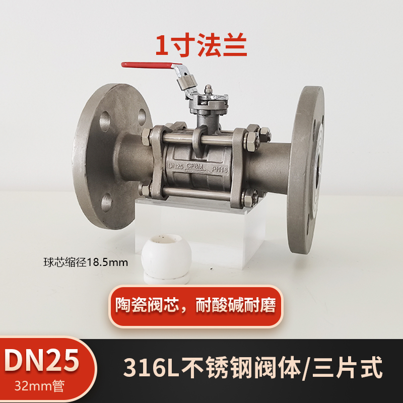 润景陶瓷芯·手动不锈钢耐酸碱球阀DN20-DN50(法兰)