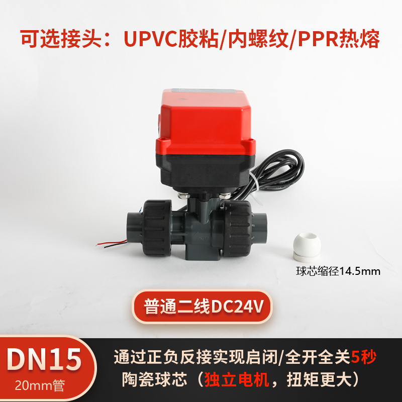 润景碳化硅阀芯·普通二线电动塑料球阀DN15-DN50