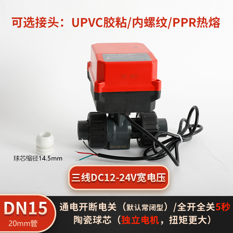 润景陶瓷芯·独立执行器断电复位三线电动塑料球阀DN15-DN25