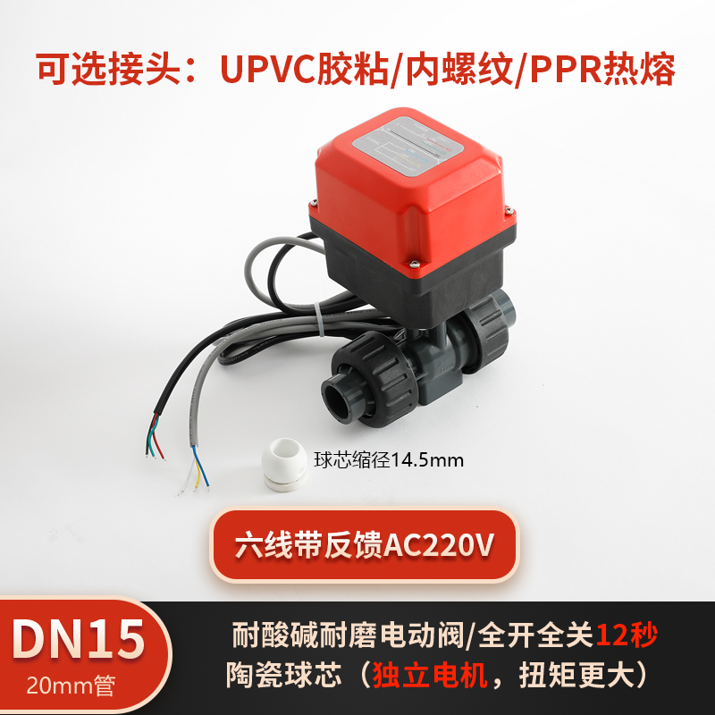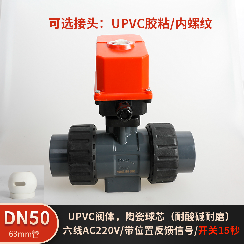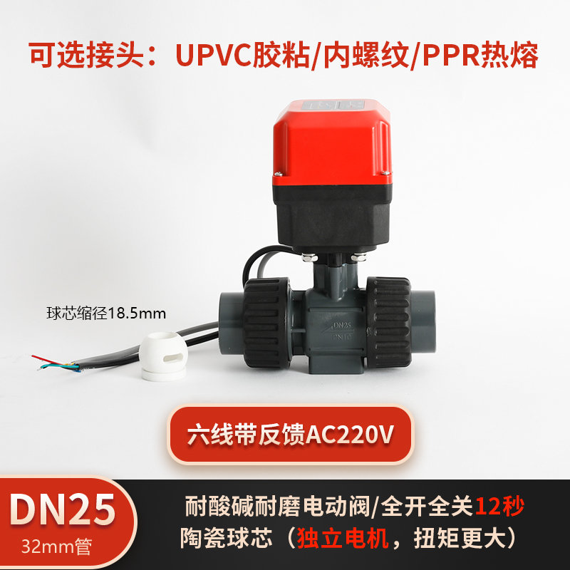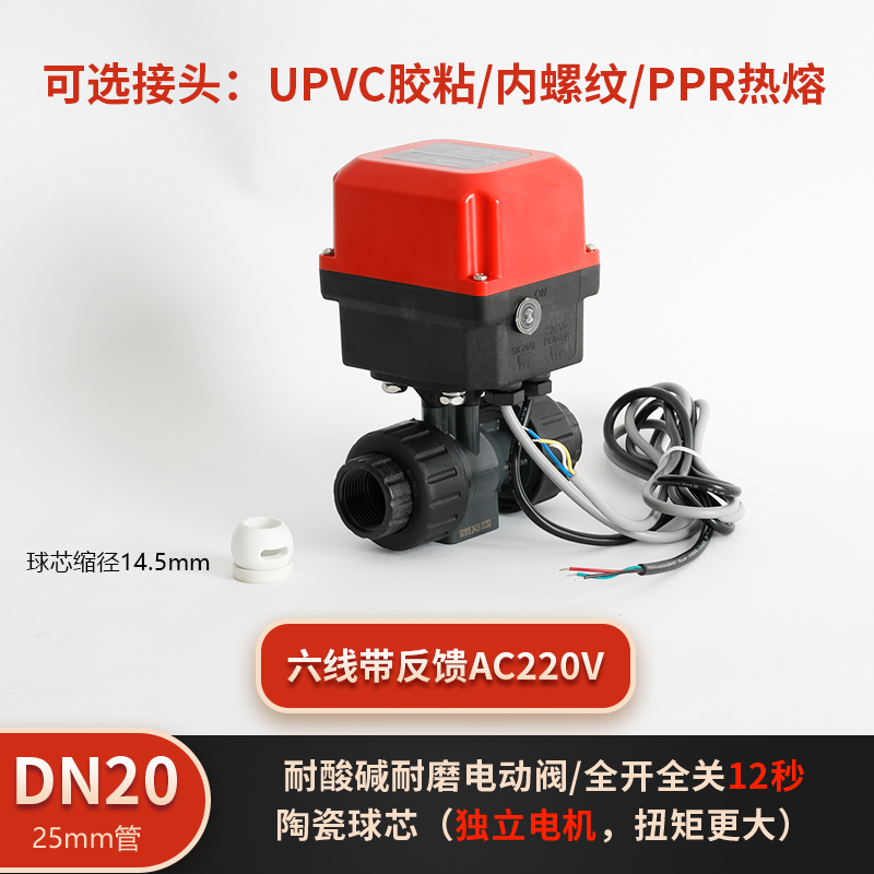 润景陶瓷芯·独立执行器三线AC220V带反馈塑料电动球阀DN15-DN80