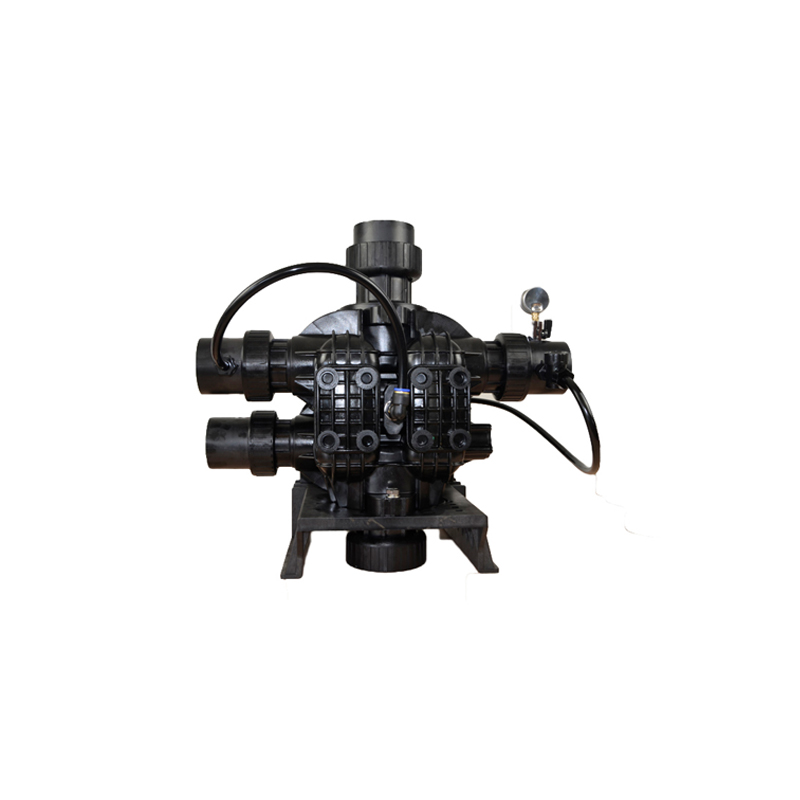 With a flow rate of 40m³/h, this multiport filter valve comes with 4 ports arranged in a T-configuration in valve body. The valve is equipped with a corrosion resistant gasket for opening and closing. The unfiltered water is brought in from the pump port, which is sent to different passages for treatment. The different flow passages are easily controlled by pushing or pulling the hydraulically balanced piston in the valve. This enables the valve to be used as a service, backwash, and fast rinse valve.