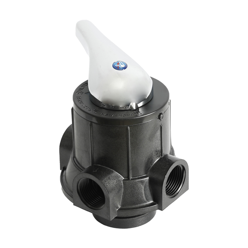 The F56A manual multiport filter valve features a flow rate of 4m³/h and utilizes a corrosion resistant gasket for opening and closing functions. It can be used as a service, backwash, and fast rinse valve, even under pressure. With a handle, you can switch the settings easily without turning off the pump or the power. When selecting a valve setting, make sure to always depress the handle before turning.