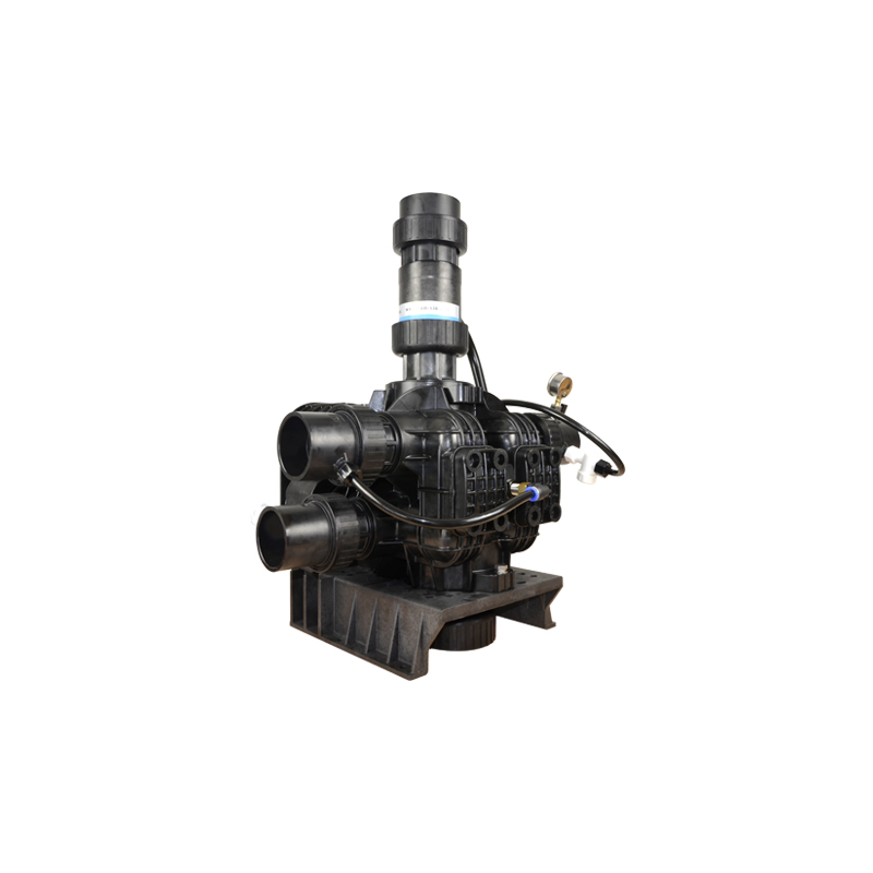 Operating with a flow rate of 40m³/h, the F112AS manual multiport softener control valve comes with 4 ports in a T-configuration in the valve body. Unfiltered water is brought in from the pump port, which is then sent to different passages for treatment. The flow passages are easily controlled through pushing or pulling the hydraulically balanced pistons in the valve. Adjusting these pistons, enables the valve to be used for backwash, brine and slow rinse, fast rinse, and brine refill functions.