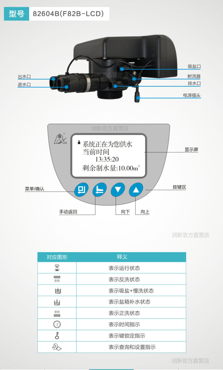 顺逆流软化阀82604_F82A-LCD 82604B_F82B-LCD