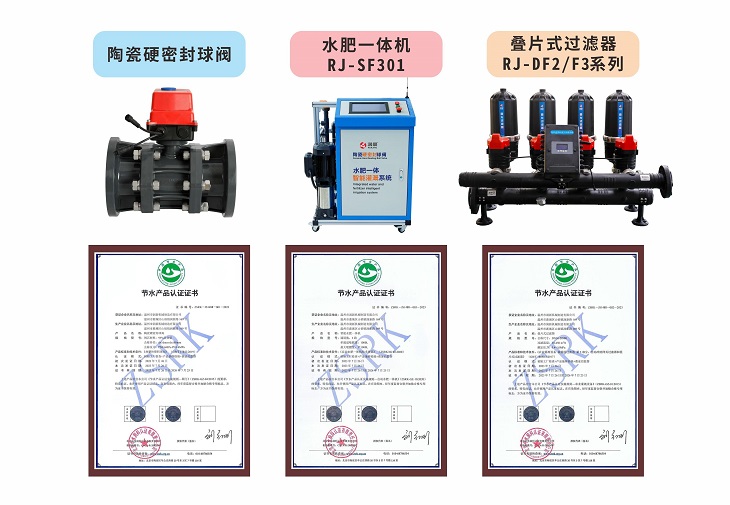 润景陶瓷硬密封球阀、出水桩阀、水力控制阀、叠片式过滤器、水肥一体机等产品通过严格检测,节水性能符合能效标准或技术规定,获得节水产品认证。