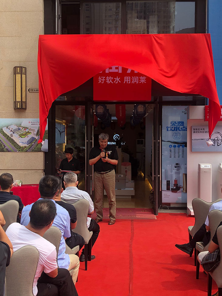杨董事长为开业活动致辞,认为全屋净水是未来发展的大势,会随着消费升级成为家庭生活中必不可少的物品,并表示在西安这类水质硬度较高的地区,润莱软水机丰富的产品线和过硬的产品质量极具优势,不仅值得消费者信赖,更值得代理商和经销商去深入研究广泛的应用。
