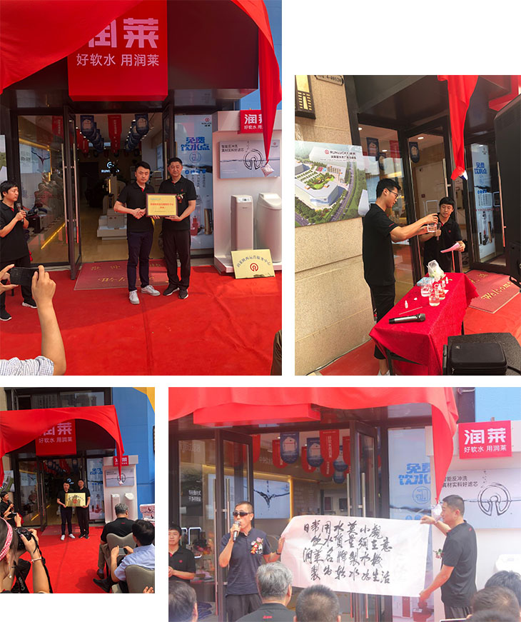 润莱现场演示了余氯检测、水质硬度检测等多个净水科普实验,并进行授牌仪式,润莱陕西运营服务中心负责人高军上台致辞并与嘉宾共同揭幕、宣布开业,润莱河北代理商、西代理商送上了开业祝福。