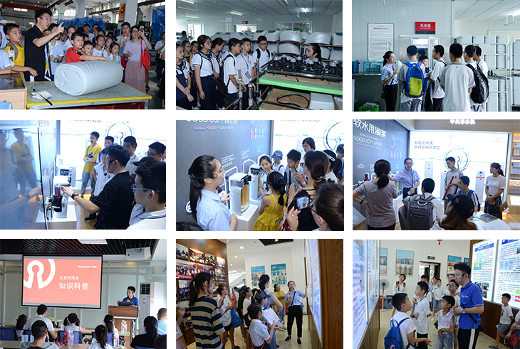 通过参观净水器生产车间、参观产品展示厅、水知识小讲座等环节,孩子与家长们系统、全面地了解生活中常见的水污染及解决方法。