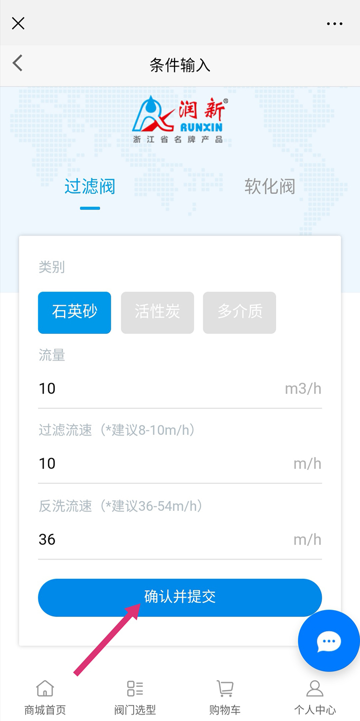 2. 进入“润新阀”选型系统