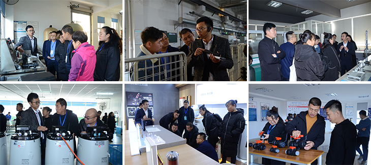 客商们参观了型式试验室、检测中心、“润新阀”和润莱软水机生产车间,深入考察润新公司的研发、生产、质检及企业文化状况。