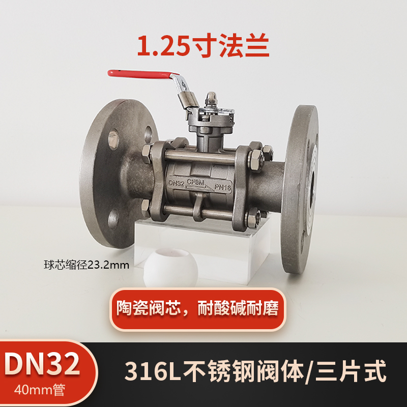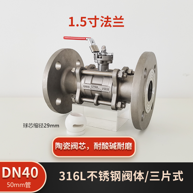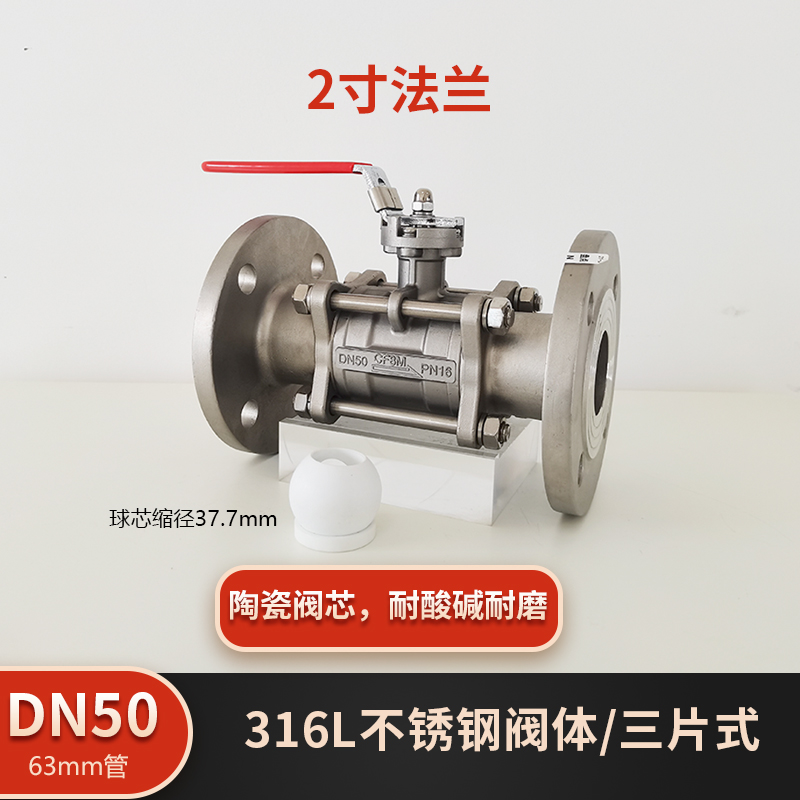 润景陶瓷芯·手动不锈钢耐酸碱球阀DN20-DN50(法兰)