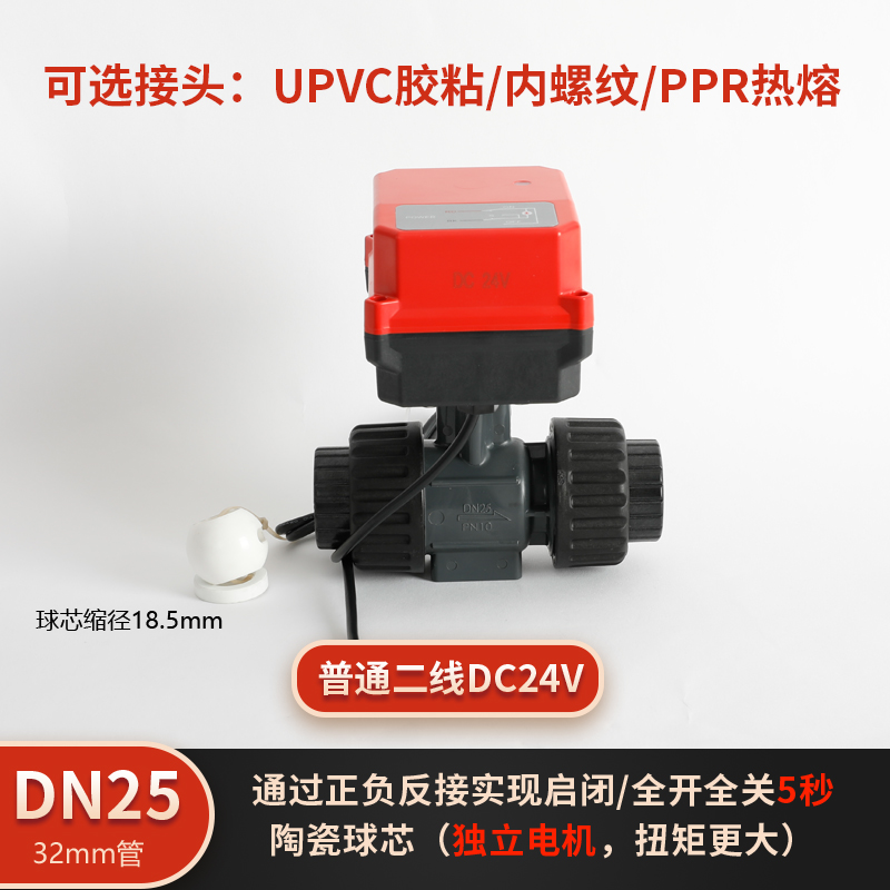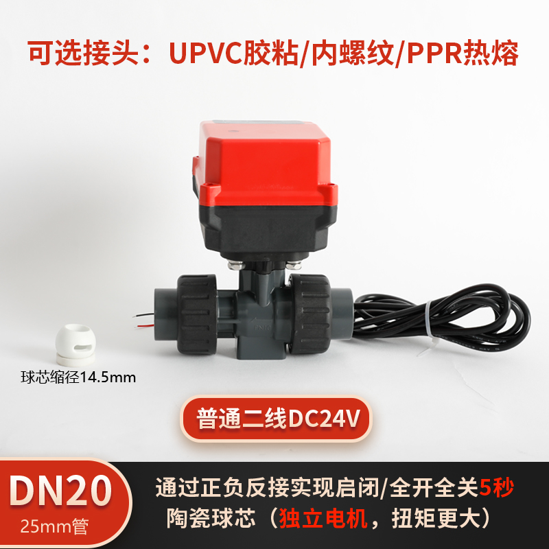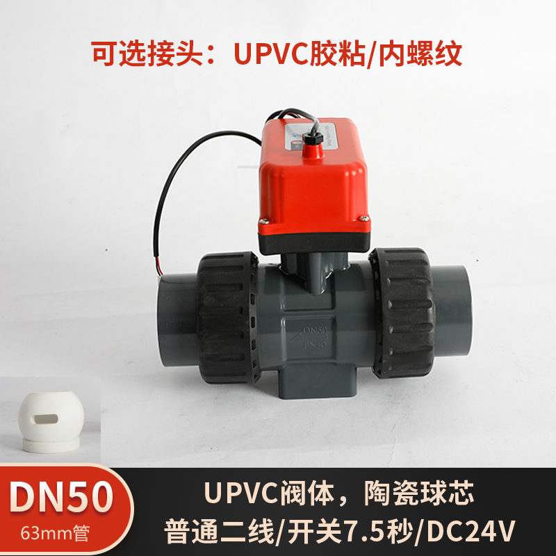 润景碳化硅阀芯·普通二线电动塑料球阀DN15-DN50
