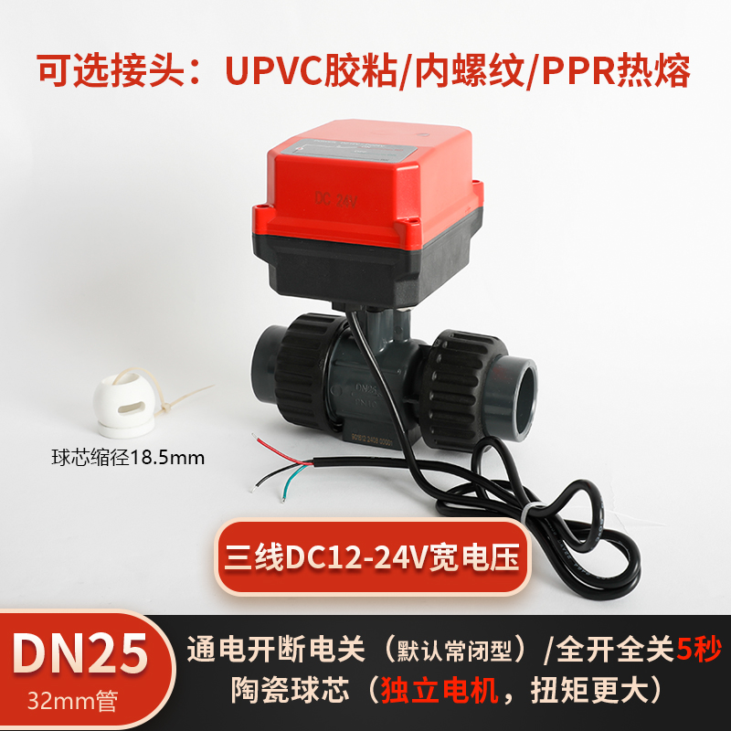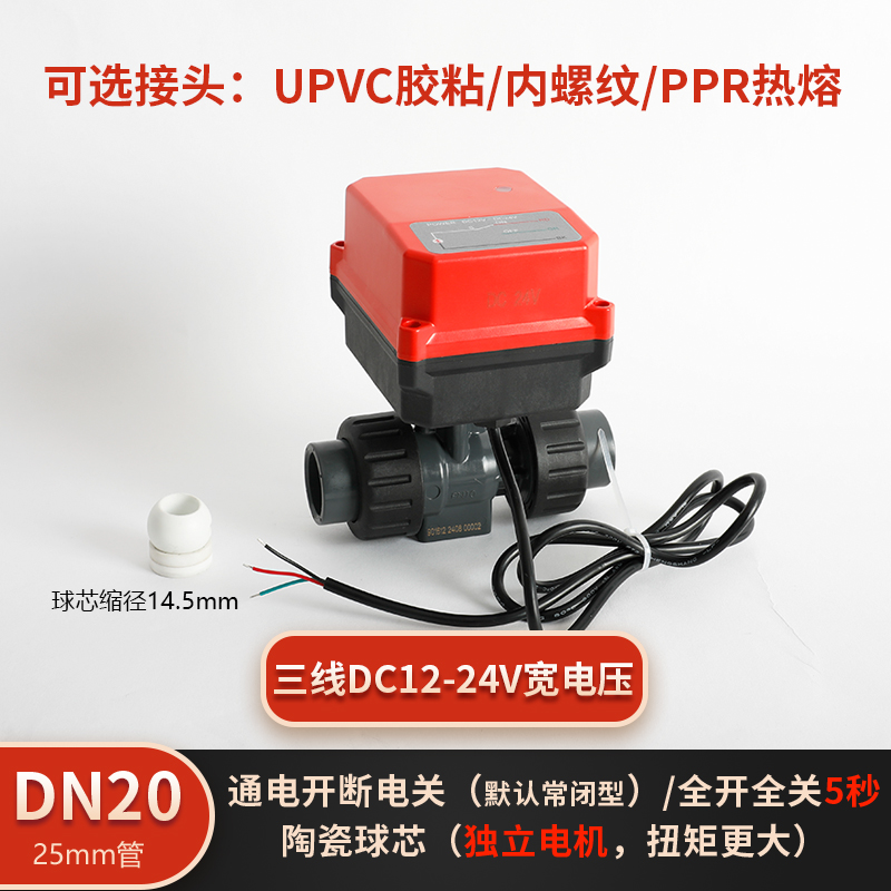 润景陶瓷芯·独立执行器断电复位三线电动塑料球阀DN15-DN25