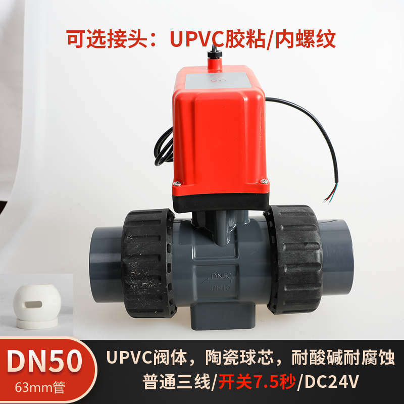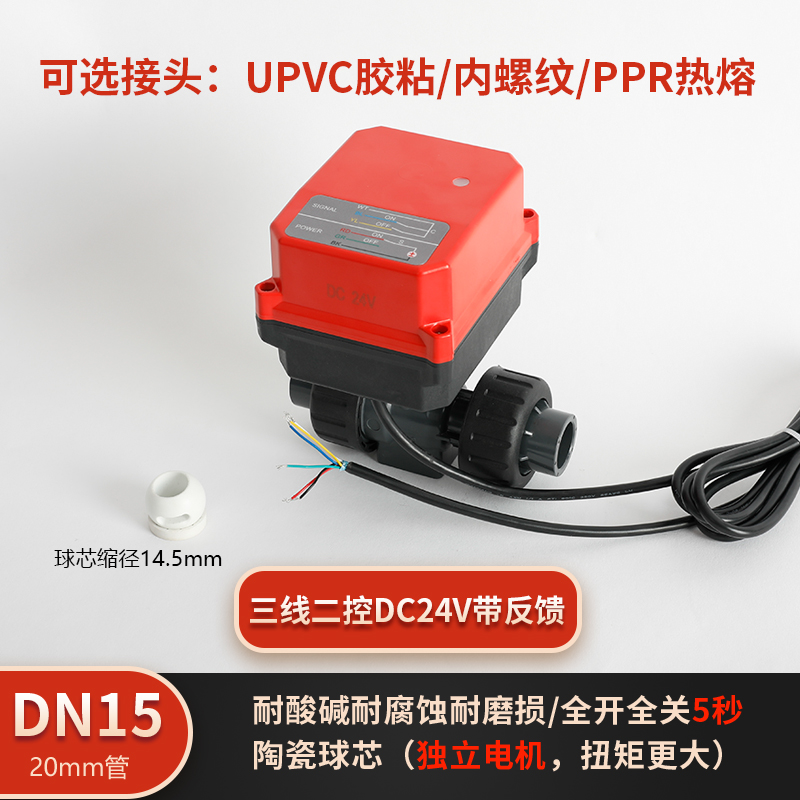 润景陶瓷芯·独立执行器三线带反馈三线DC24V塑料电动球阀DN15-DN50
