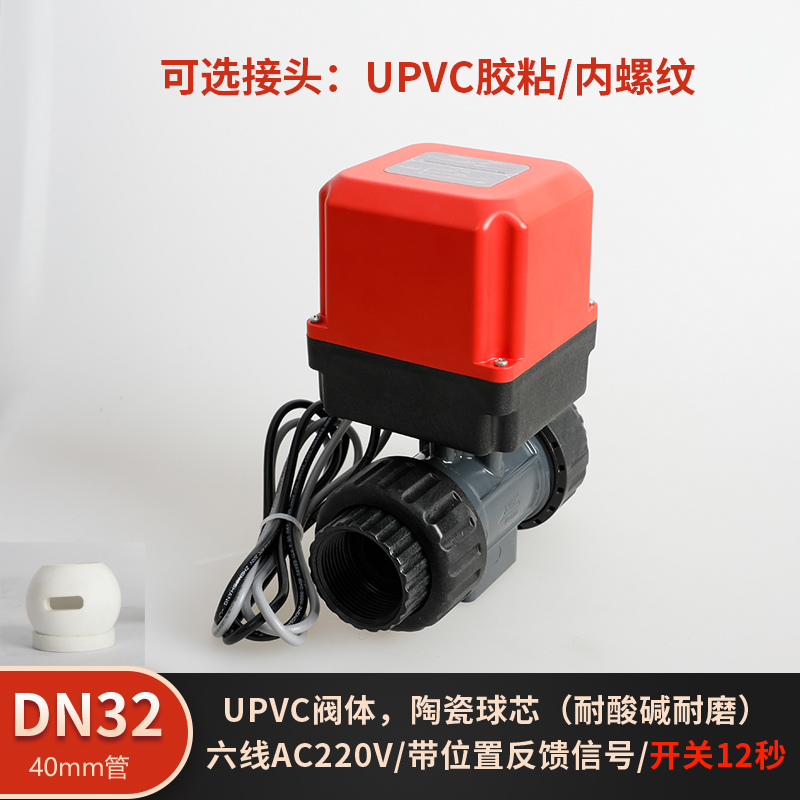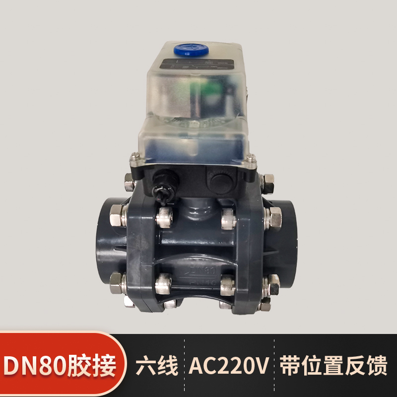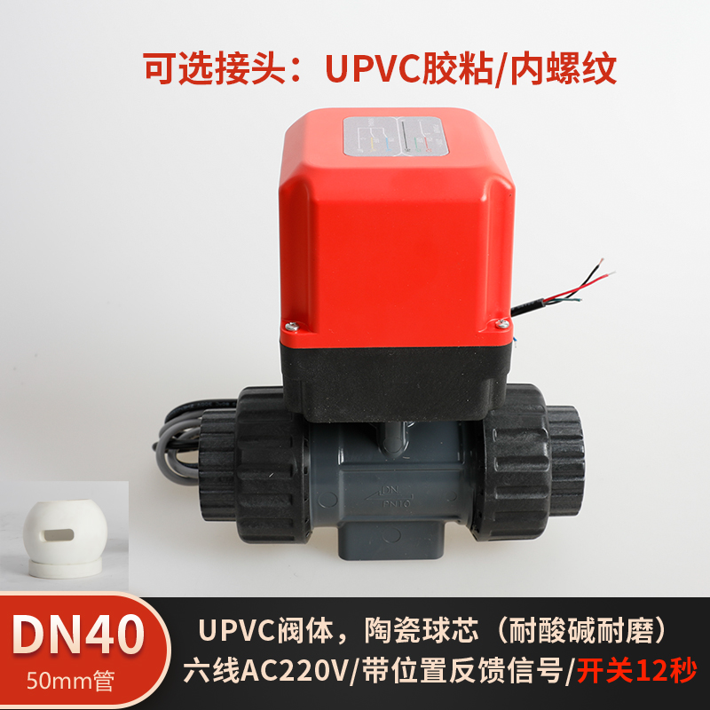 润景陶瓷芯·独立执行器三线AC220V带反馈塑料电动球阀DN15-DN80