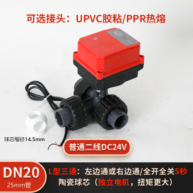 润景陶瓷芯·L型三通普通二线电动塑料球阀DN25-DN50