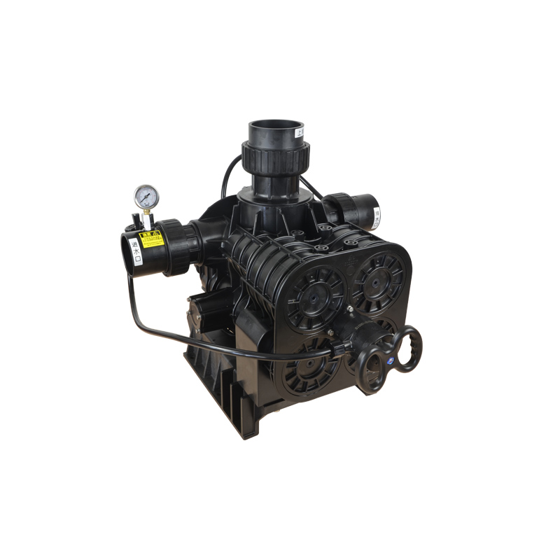 With a flow rate of 40m³/h, this multiport filter valve comes with 4 ports arranged in a T-configuration in valve body. The valve is equipped with a corrosion resistant gasket for opening and closing. The unfiltered water is brought in from the pump port, which is sent to different passages for treatment. The different flow passages are easily controlled by pushing or pulling the hydraulically balanced piston in the valve. This enables the valve to be used as a service, backwash, and fast rinse valve.