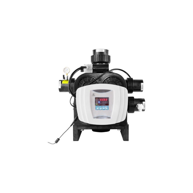 With a flow rate of 40m³/h, the F112B1/B3 features 4 ports arranged in a T-configuration in the valve body. The automatic multiport filter valve uses a planar and corrosion resistant gasket for opening and closing. Unfiltered water is brought in from the pump port, which is sent to different passages for treatment. The different flow passages are easily controlled through pushing or pulling the hydraulically balanced piston in the valve, realizing different functions, including service, backwash, and fast rinsing. The F112B1 is a timer clock type while the F112B3 is a meter type.