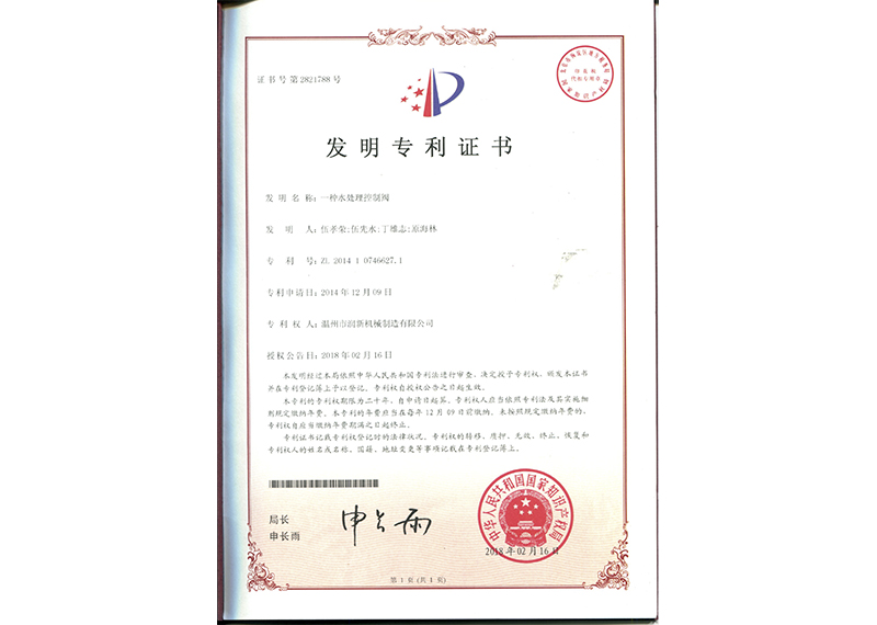 欢迎访问温州市润新机械制造有限公司官网荣誉资质中心页面,我司是专业的陶瓷球阀厂家,在此您可以看到我司各种证书详情,欢迎前来咨询选购我司产品!